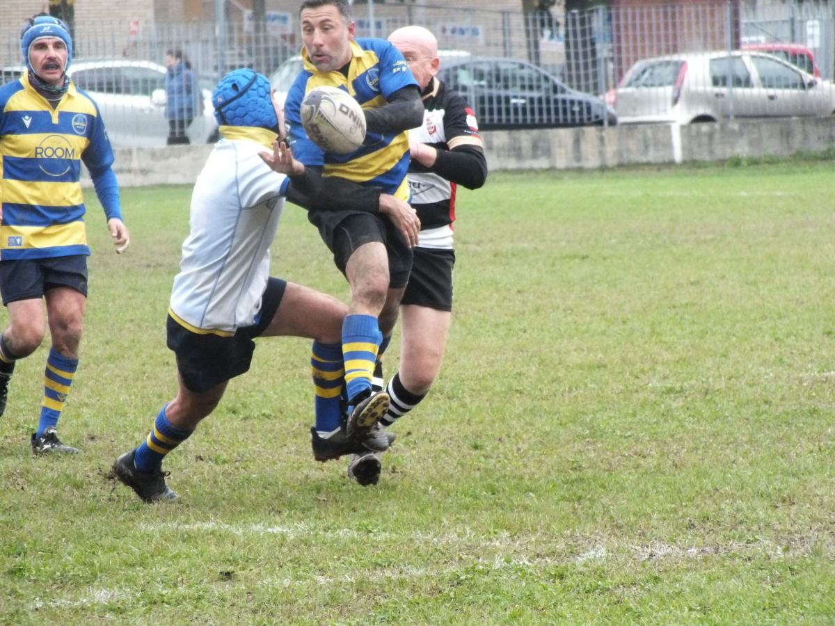 Una doccia fredda per i Milo’ld che, tuttavia, non si perdono d’animo, prendono le misure ai Panda e cominciano a macinare gioco. Il pareggio giunge dopo un’insistita serie di percussioni e pick and go conclusa da una splendida meta di capitan Daniele – Cinghio – Fulgenzi che, con un doppio carpiato (coefficiente 2.0) supera la difesa avversaria e marca. Per questo, e per molto altro, in campo e fuori, oggi m.v.p.